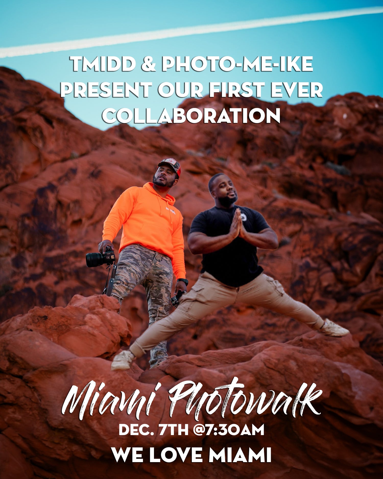 Mr. Natty With A Baddie & Inventor of the Struggio have teamed up to bring you one of the best photowalk experiences ever. We love MIAMI so it's only right to build your portfolio during a picturesque sunrise photowalk! Learn some photography techniques like off camera flash or natural light among other things from TMIDD or Photo-Me-Ike. Most of all come out and network with the community while photographing some AMAZING models during sunrise! This event will have several models to be named in the near future. If you haven't been to a TMIDD or Photo-Me-Ike Photowalk you don't want to miss this first ever collaboration.